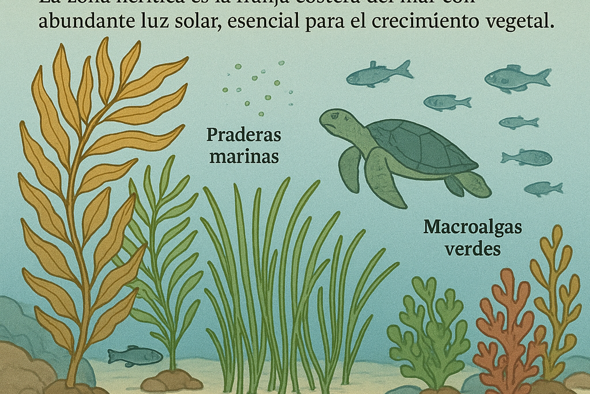 - La zona nerítica es la franja costera del mar con abundante luz solar, esencial para el crecimiento vegetal.