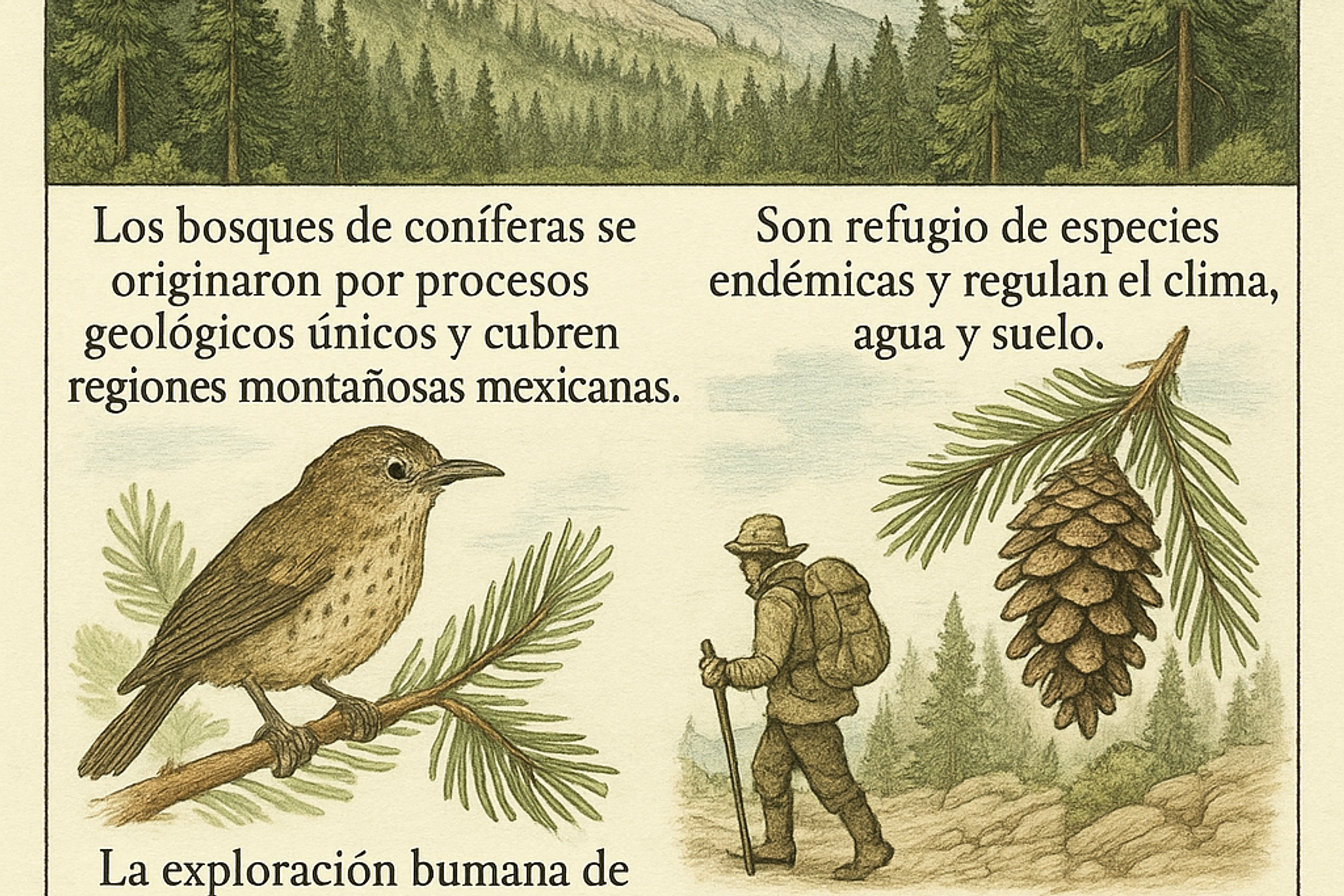- Los bosques de coníferas se originaron por procesos geológicos únicos y cubren regiones montañosas mexicanas.