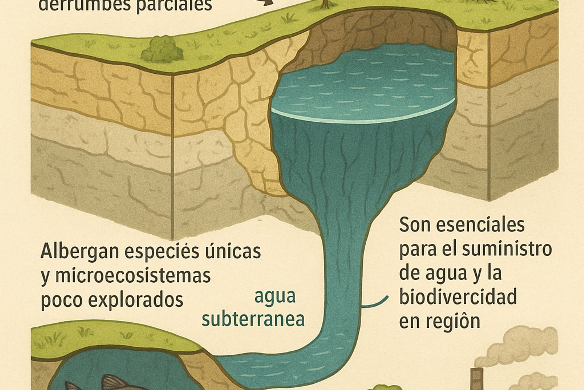 Además, los cenotes son fundamentales para mantener el nivel freático y recargar acuíferos, funciones cruciales para la sostenibilidad hídrica de la región, especialmente en lugares donde no existen ríos superficiales.