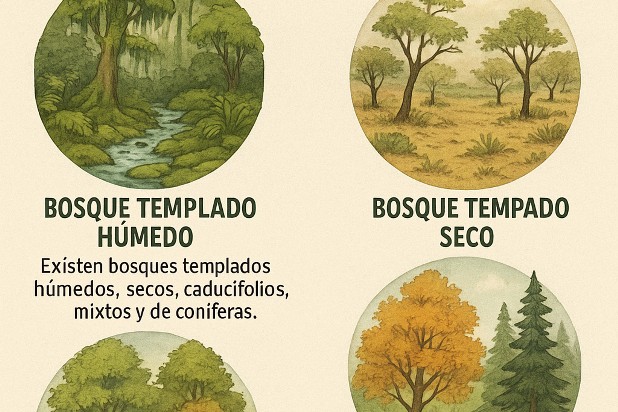 - Los bosques templados presentan gran diversidad según el clima y la altitud.