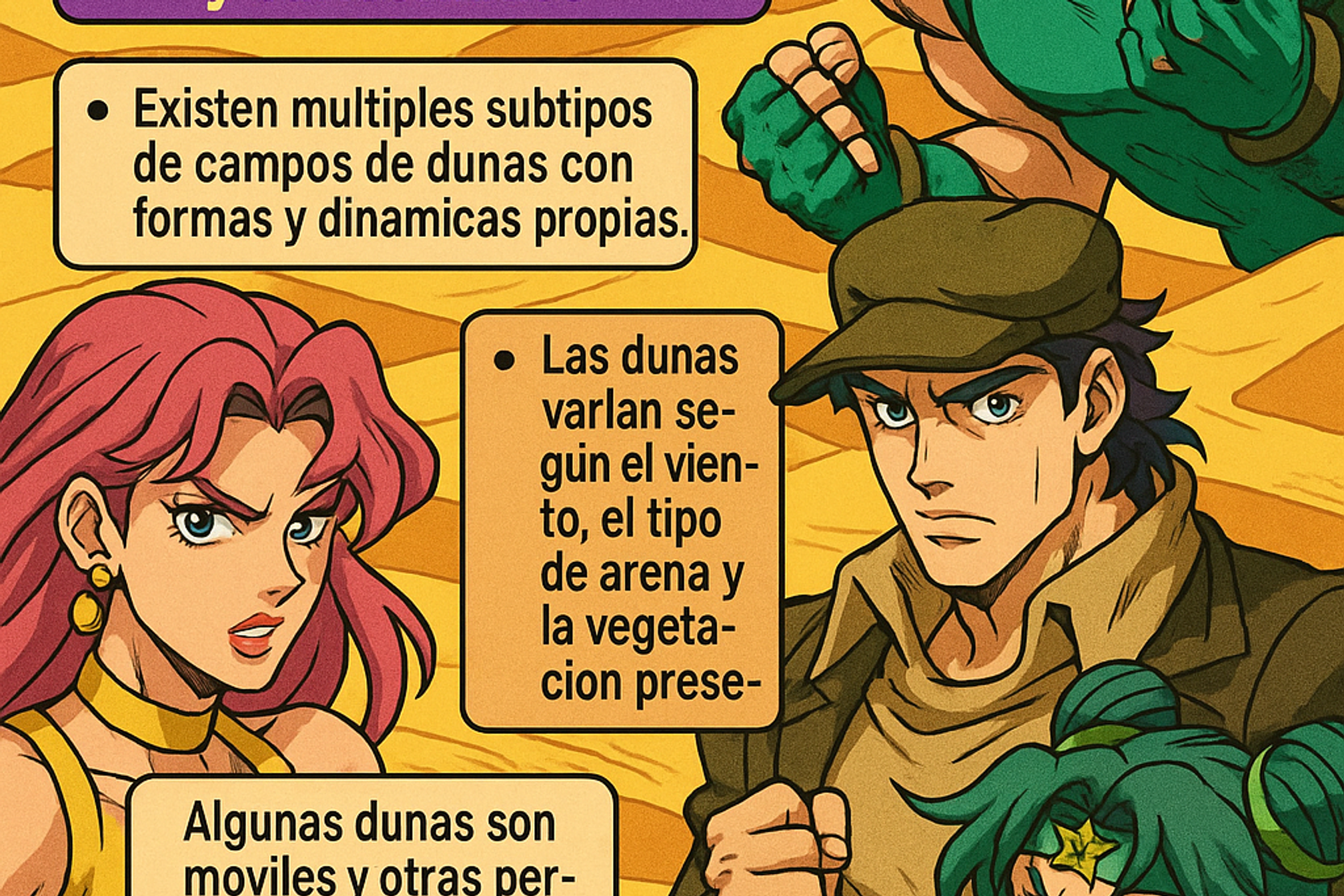 - Existen múltiples subtipos de campos de dunas con formas y dinámicas propias.