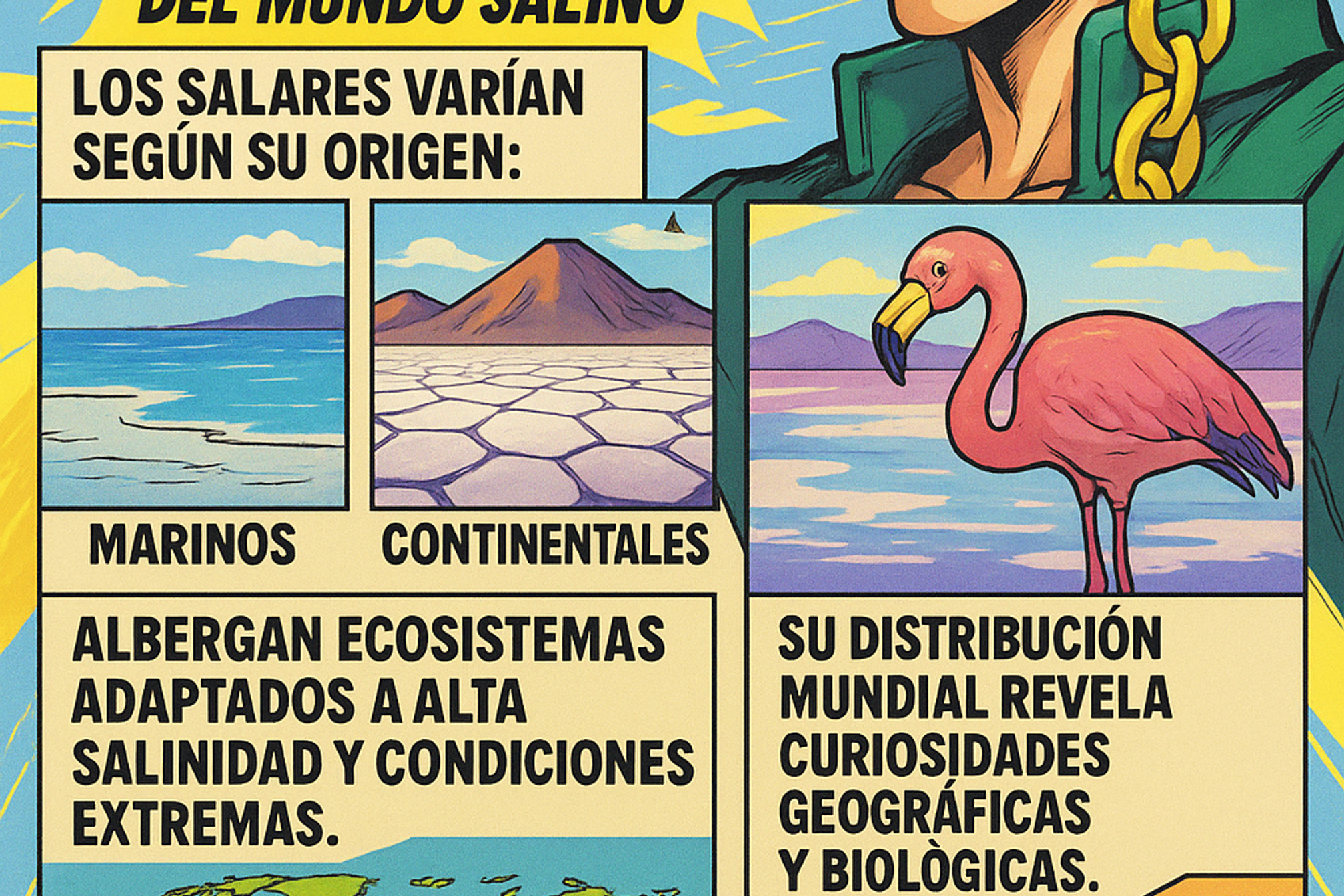 El mundo de los salares es vasto y diverso, abarcando desde inmensos desiertos blancos hasta cuencas temporales y paisajes subterráneos. Cada tipo de salar ofrece un conjunto único de condiciones ecológicas, oportunidades económicas, desafíos ambientales y fascinantes características geográficas. Comprender su variedad nos permite apreciar mejor la riqueza de los ecosistemas salinos y la necesidad de asegurar su conservación frente a amenazas como la sobreexplotación minera y el turismo desmedido.