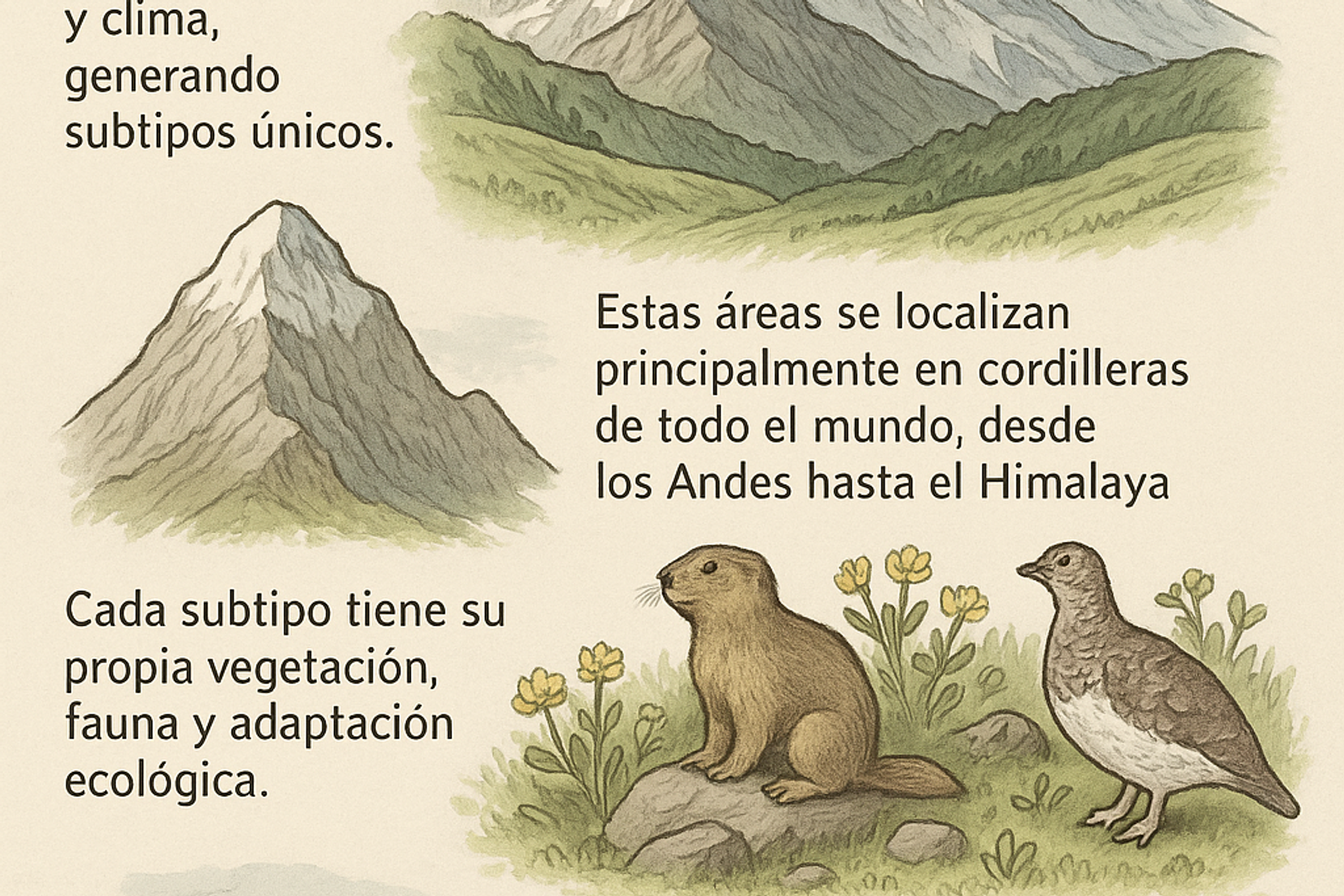 - Las zonas alpinas varían según altitud, geografía y clima, generando subtipos únicos.