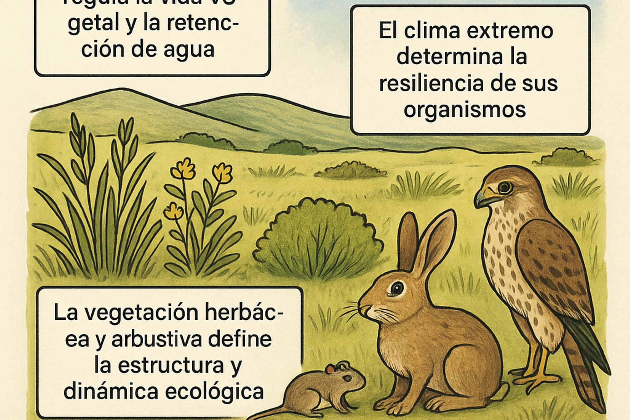 La estepa es un ecosistema singular caracterizado por extensas llanuras, vegetación baja y grandes fluctuaciones climáticas. En este artículo desglosamos sus principales componentes, explicando el papel del suelo, la vegetación, la fauna y los factores climáticos en la conformación de este ambiente.