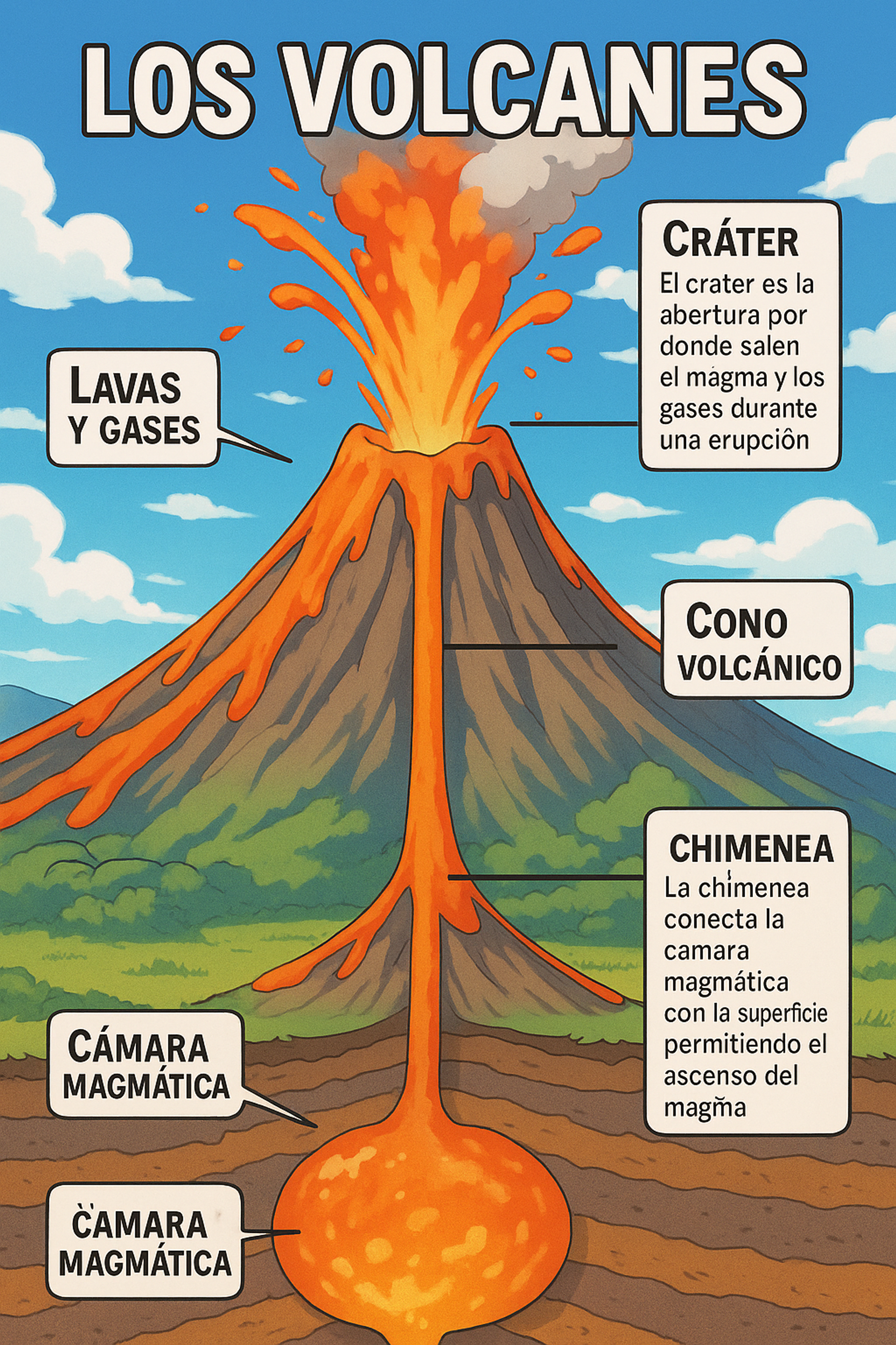 Los volcanes son impresionantes formaciones geológicas compuestas por varias partes esenciales. Desde la cámara magmática hasta el cráter, cada componente cumple un papel único en la formación y erupción volcánica. Conocer estas partes es clave para comprender cómo funcionan los volcanes y su impacto en la Tierra.