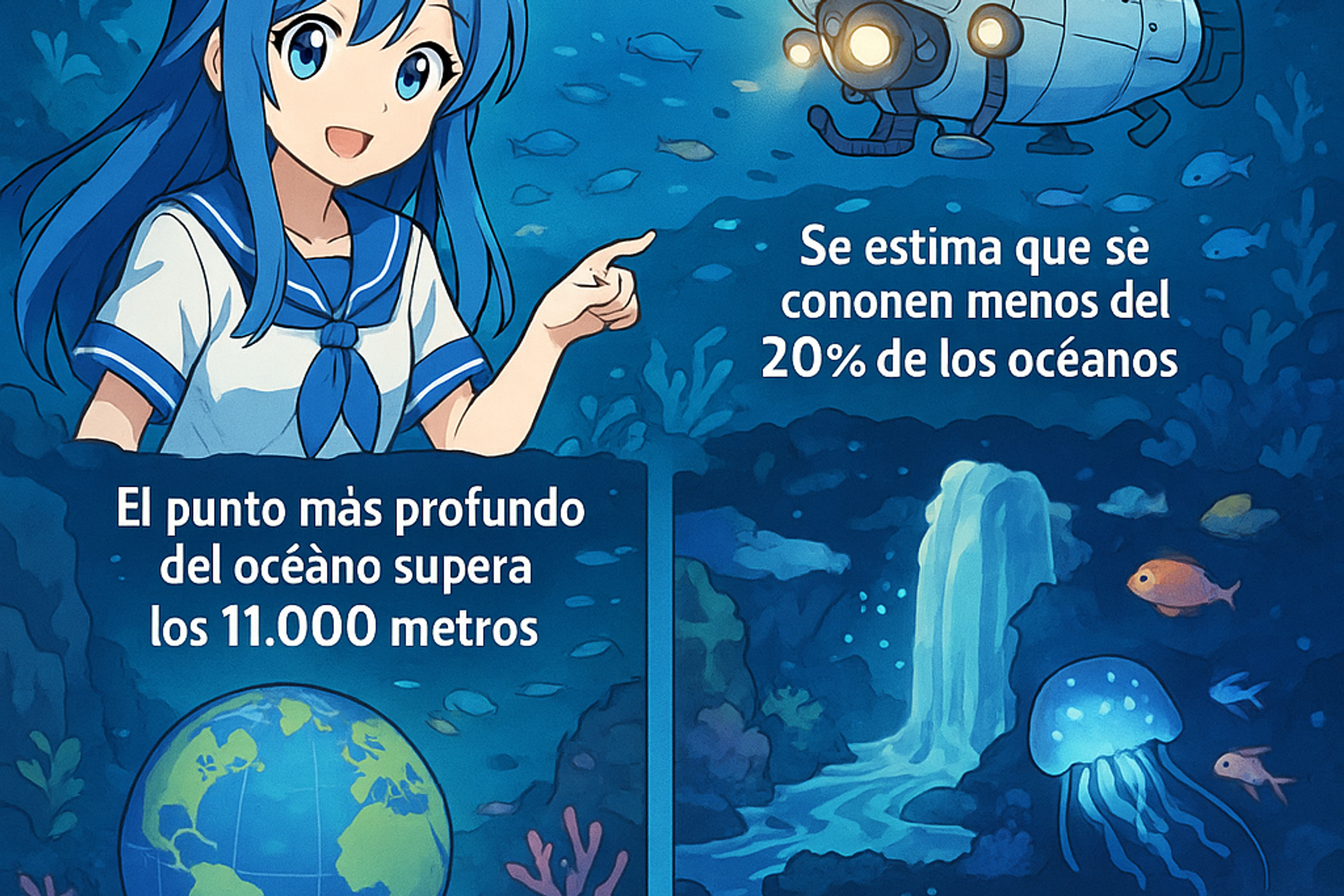 A pesar de cubrir más del 70% de la superficie terrestre, menos del 20% del fondo oceánico ha sido explorado en detalle. Esto convierte a los océanos en uno de los grandes misterios de nuestro planeta y en una frontera comparable a la exploración espacial por su dificultad y desconocimiento.