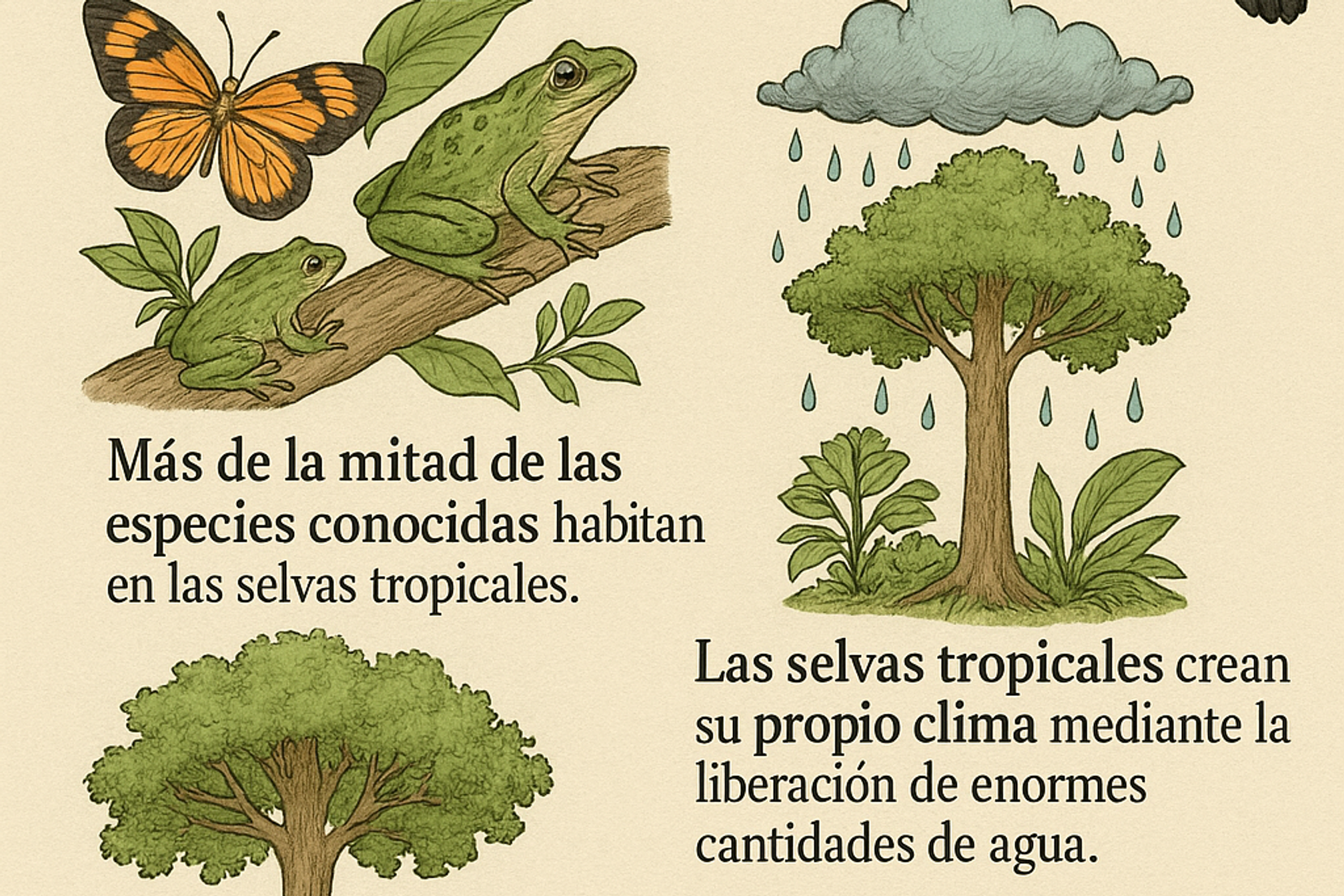 Las selvas tropicales son reconocidas como los ecosistemas más biodiversos del planeta. Aunque cubren solo alrededor del 7% de la superficie terrestre, albergan más del 50% de todas las especies vivas conocidas.