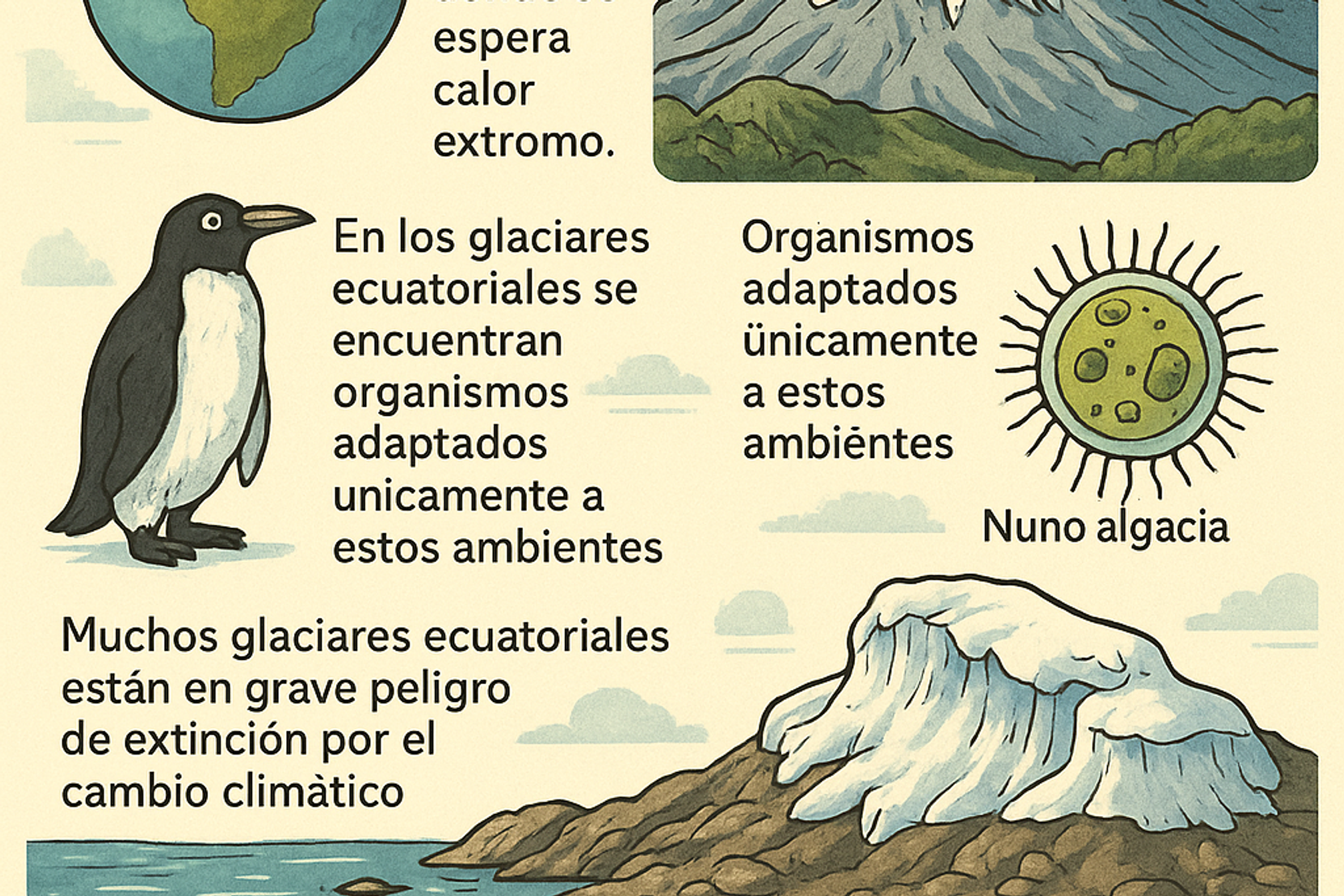 - Muchos glaciares ecuatoriales están en grave peligro de extinción por el cambio climático.