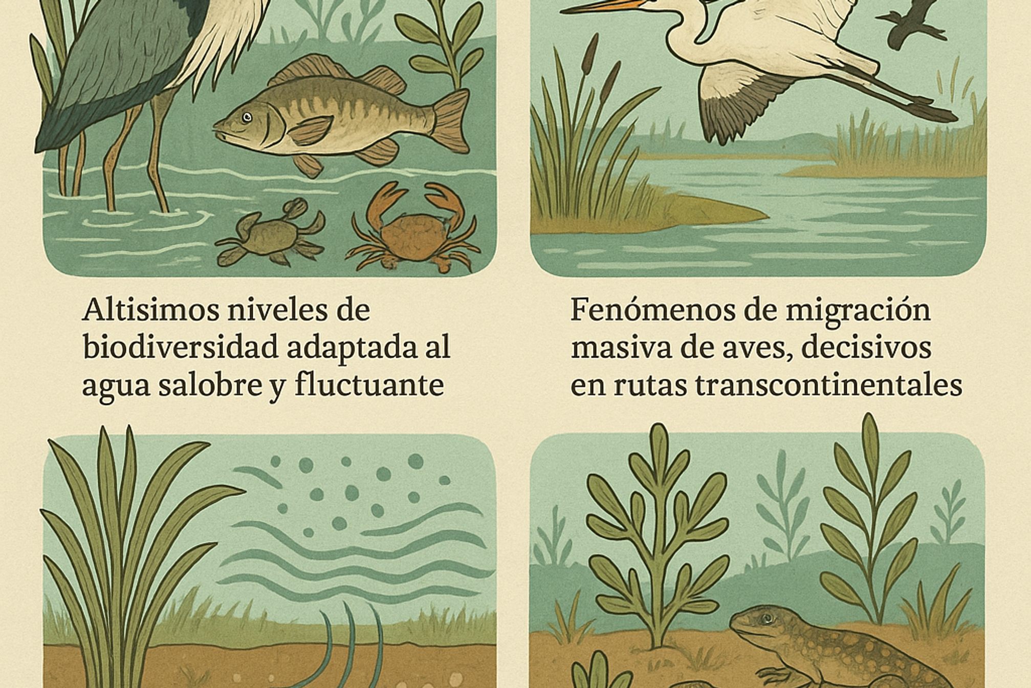 Los pantanos salobres son un refugio crucial para millones de aves migratorias, muchas en peligro de extinción. Estas áreas funcionan como estaciones de descanso, alimentación y reproducción en rutas que abarcan continentes completos.