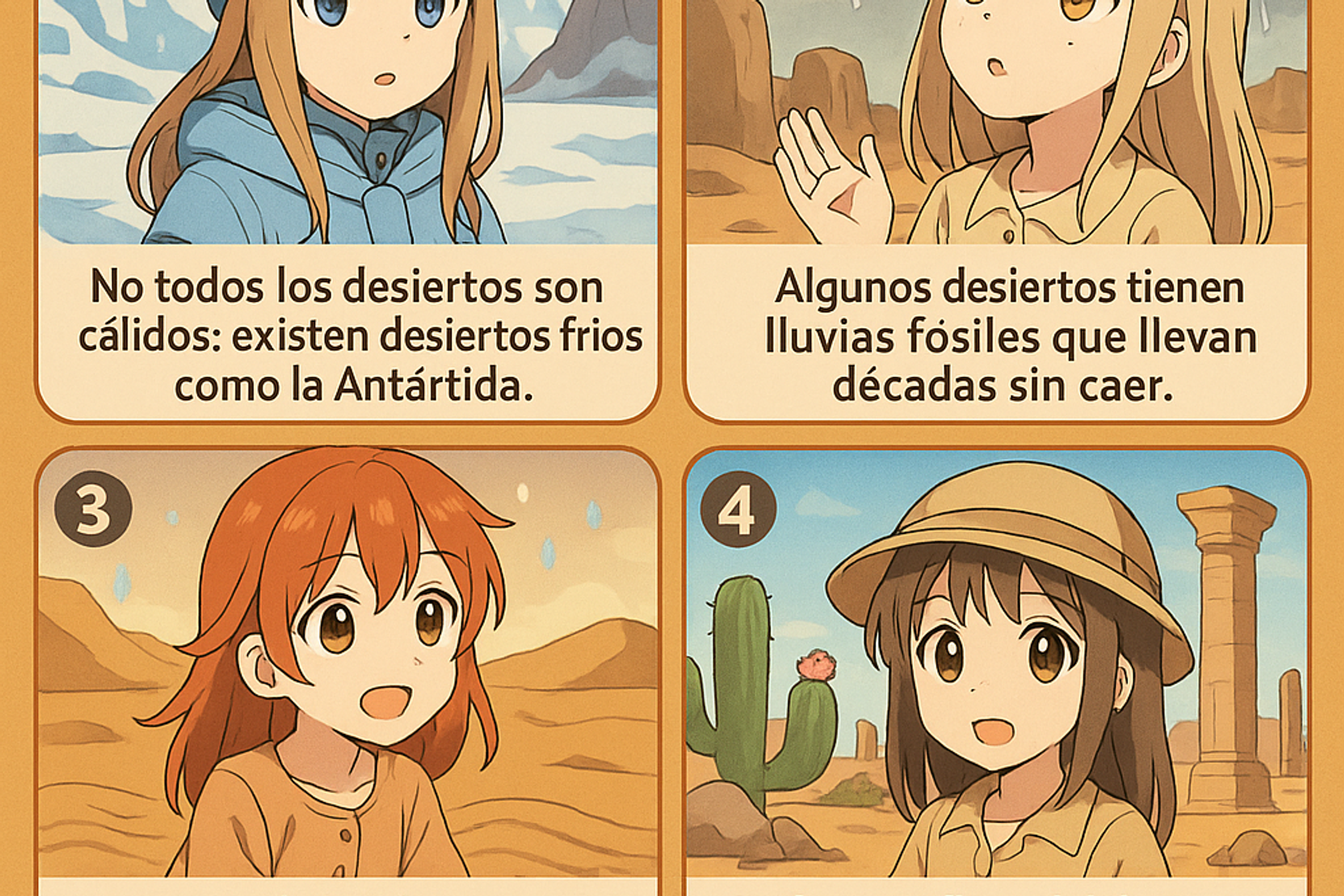 - No todos los desiertos son cálidos; existen desiertos fríos como la Antártida.