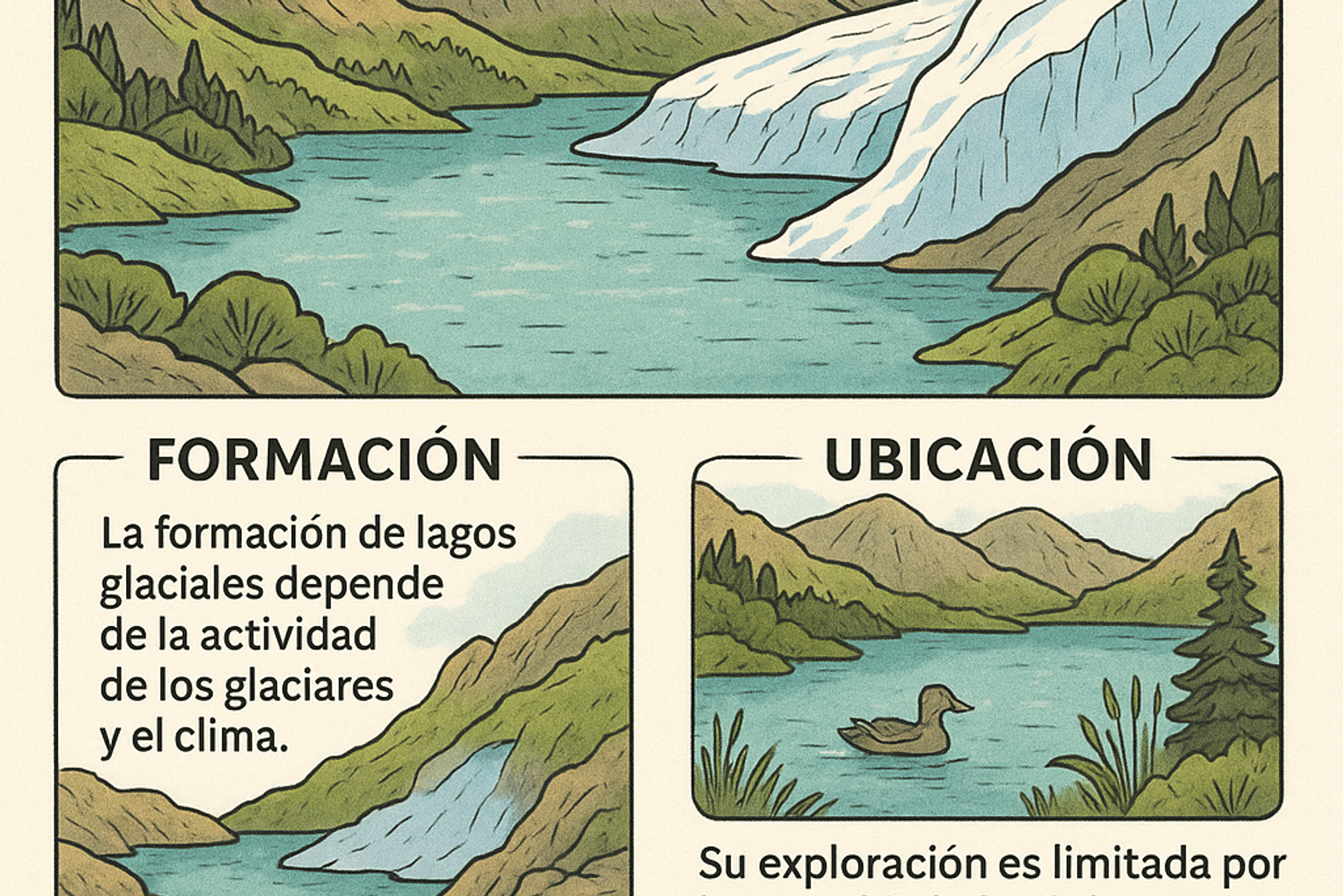 - La formación de lagos glaciales depende de la actividad de los glaciares y el clima.