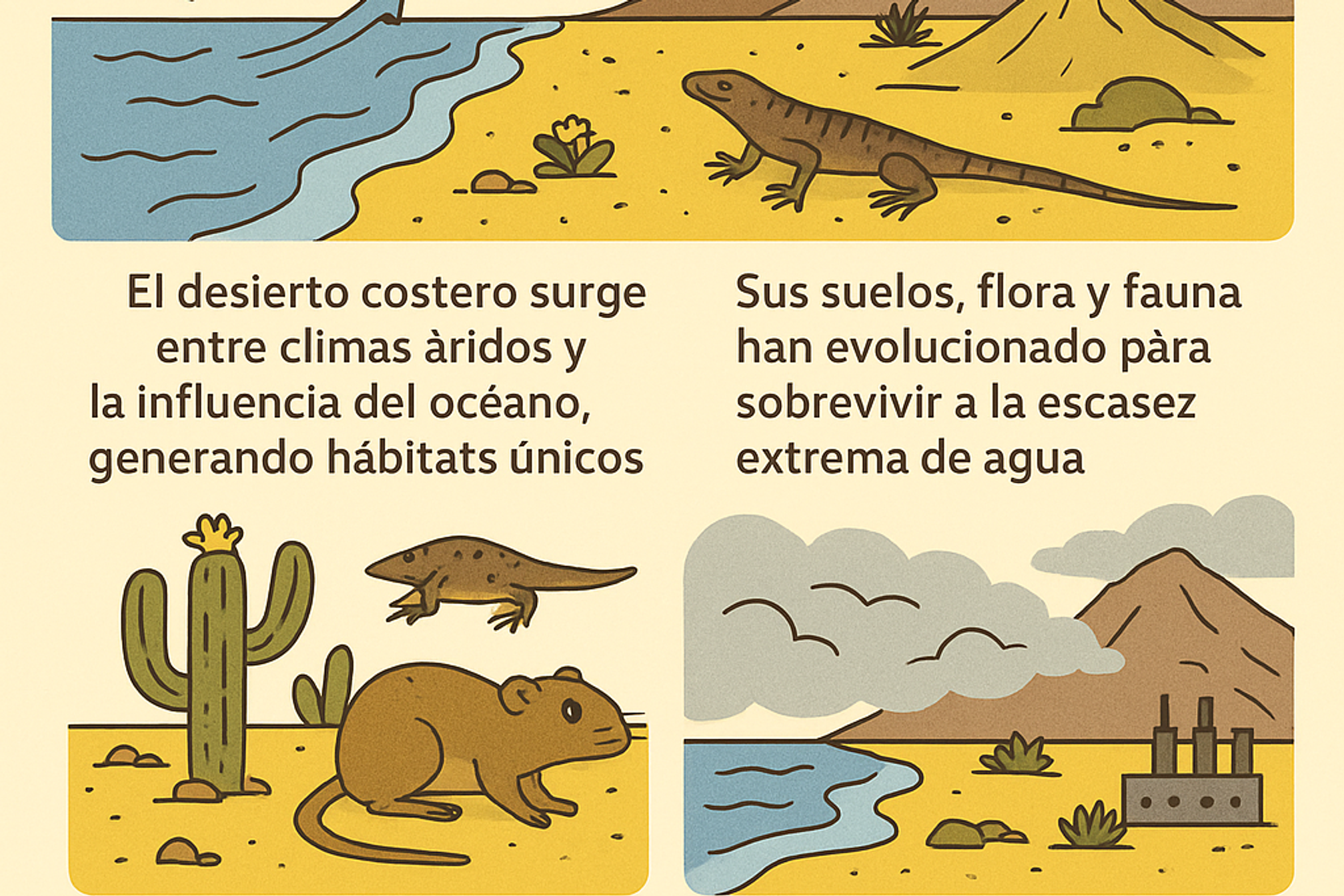 El desierto costero es un ecosistema donde el mar y la aridez se encuentran, creando paisajes y formas de vida únicas. Descubramos cómo se forma, cuál es su rol ecológico, las limitaciones en su estudio y las amenazas que enfrenta.