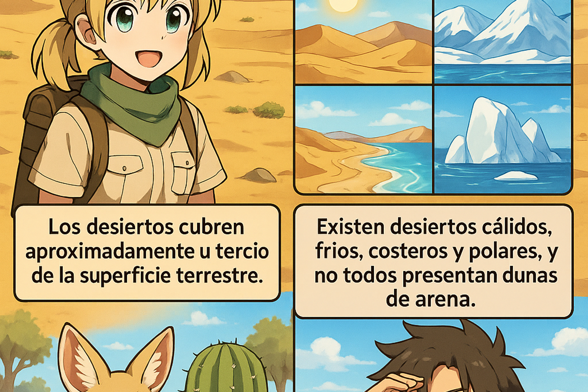- Existen desiertos cálidos, fríos, costeros y polares, y no todos presentan dunas de arena.