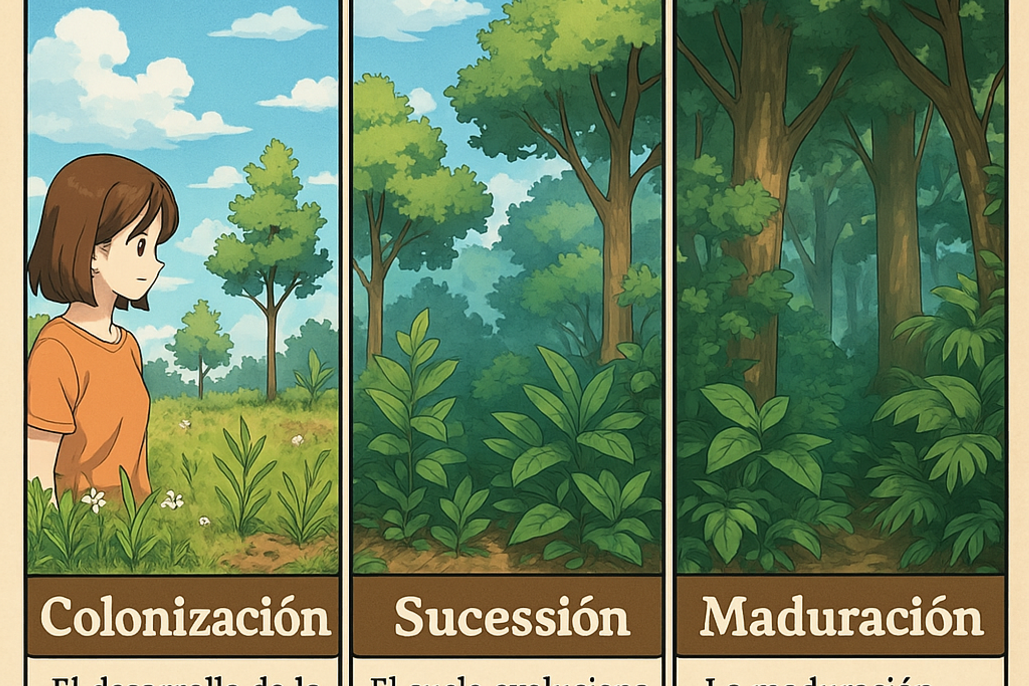 - La maduración culmina en una estructura compleja de estratos, alta humedad y ciclos de vida equilibrados.