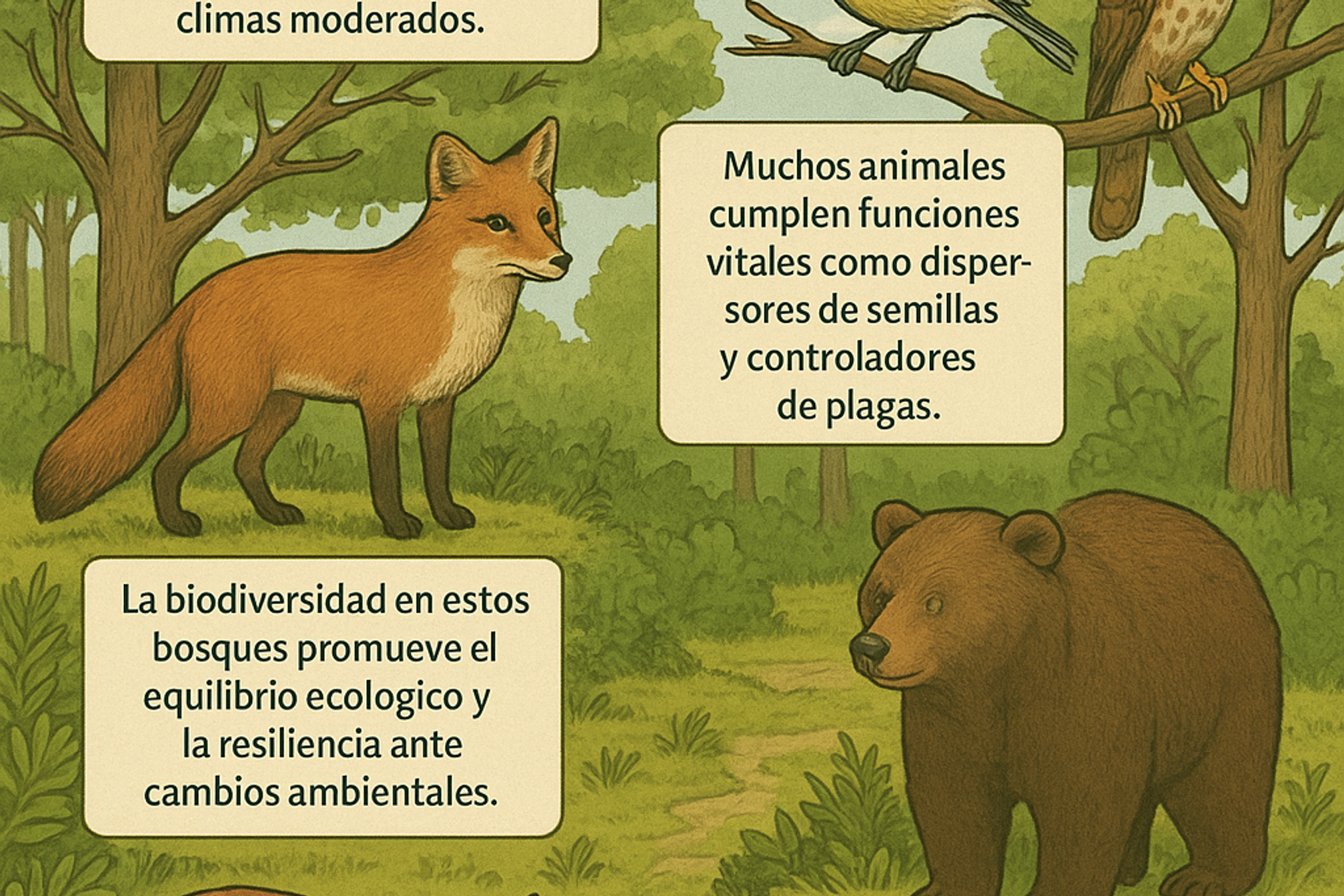 El bosque templado es un ecosistema diverso y dinámico donde conviven animales de distintos tamaños, hábitos y funciones ecológicas. Gracias a la interacción de mamíferos, aves, reptiles y anfibios, se mantiene el equilibrio de este bioma, asegurando la renovación del bosque y la supervivencia de sus especies. Conocer y preservar a estas diez especies representativas es clave para conservar el patrimonio ambiental y la riqueza biológica del planeta.