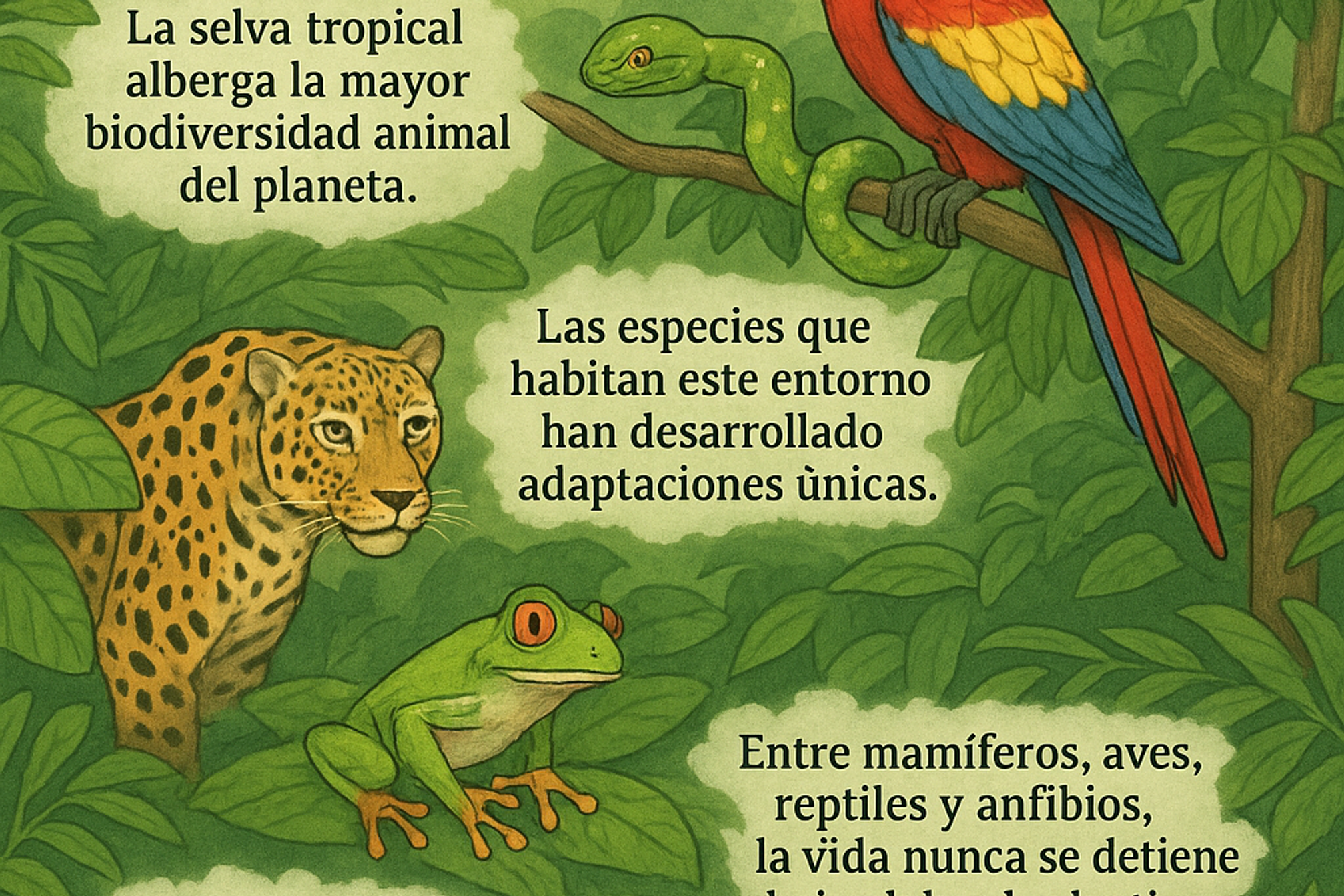 La selva tropical es el hogar de una asombrosa cantidad de especies animales adaptadas a la vida entre la densa vegetación y el clima húmedo. Descubre cómo interactúan y sobreviven las 10 especies más representativas de este fascinante ecosistema.