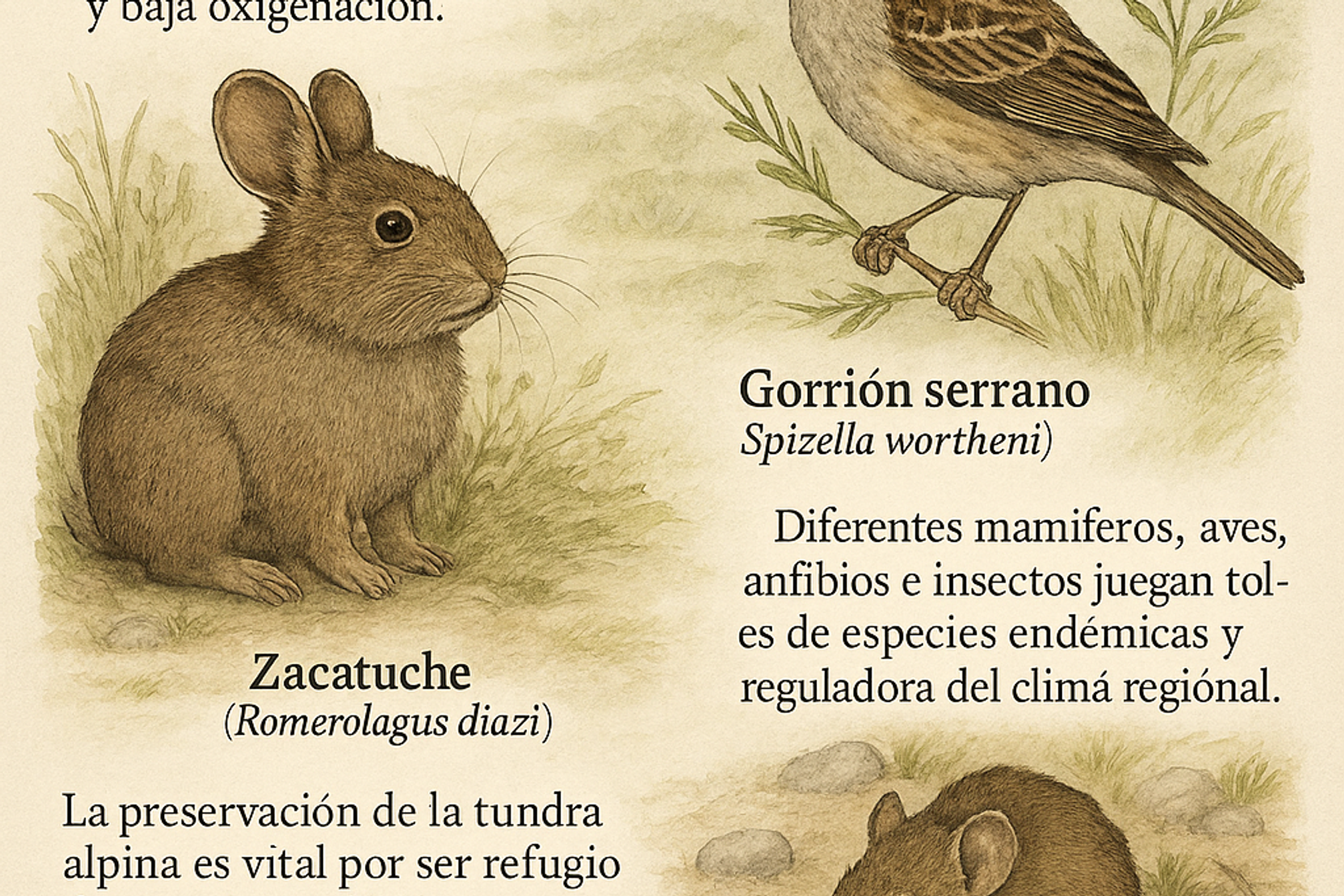 - La tundra alpina de México alberga especies adaptadas a condiciones de frío extremo y baja oxigenación.