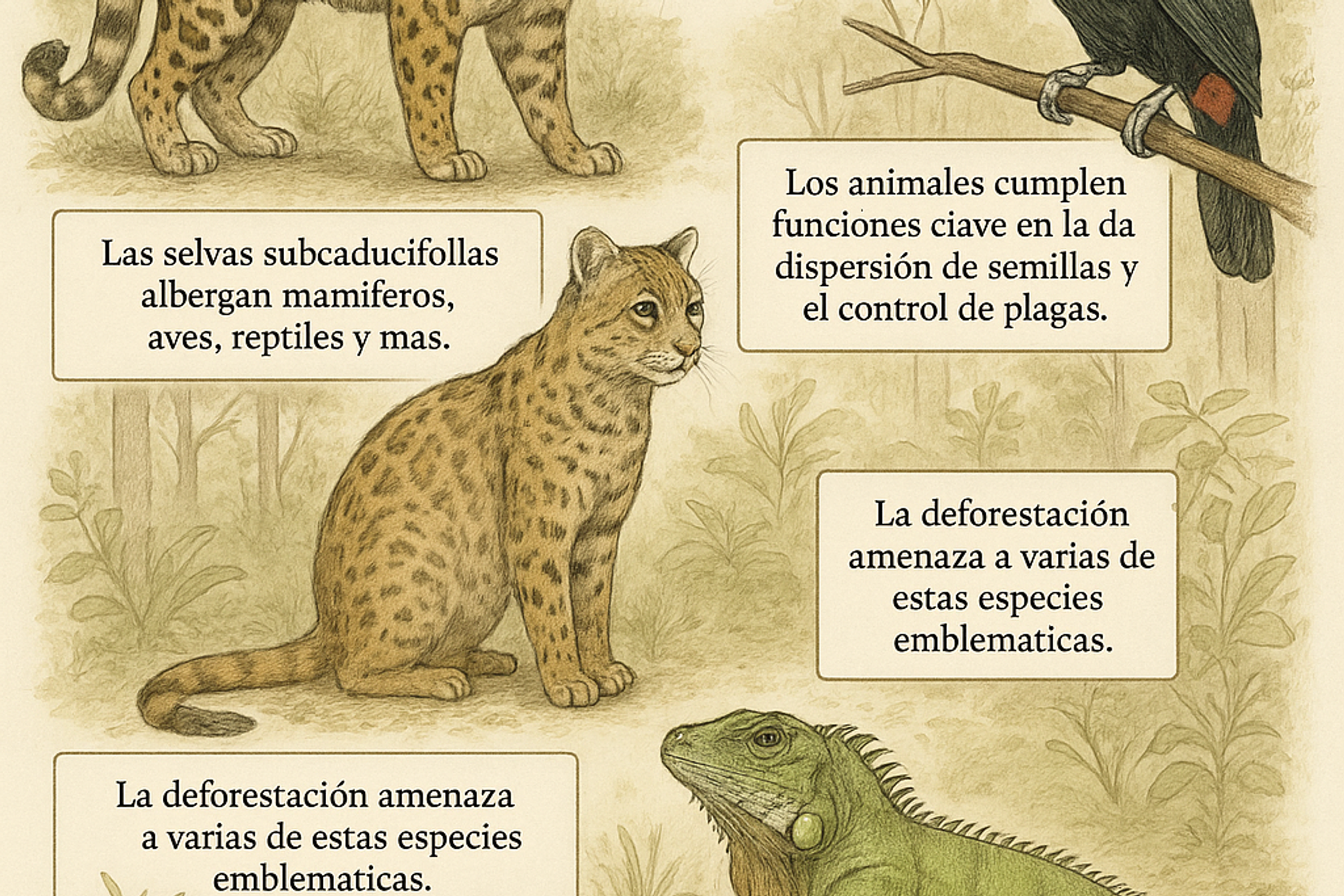 Las selvas subcaducifolias son refugio de una diversidad impresionante de especies animales, claves en el equilibrio ecológico. Descubre las 10 especies más representativas y cómo interactúan con su entorno.