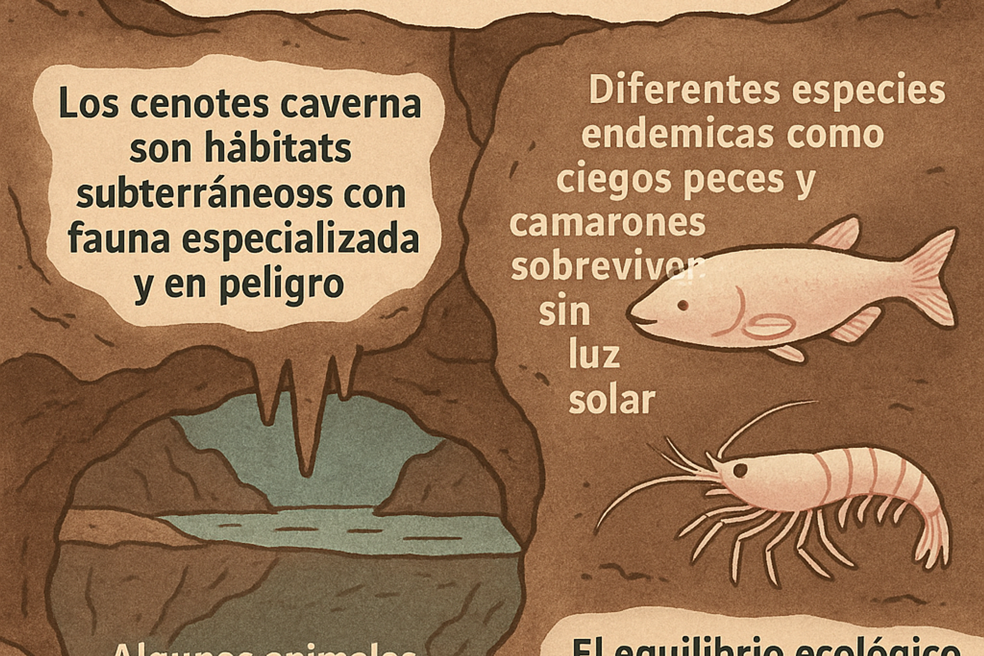 - Los cenotes caverna son hábitats subterráneos con fauna especializada y en peligro.