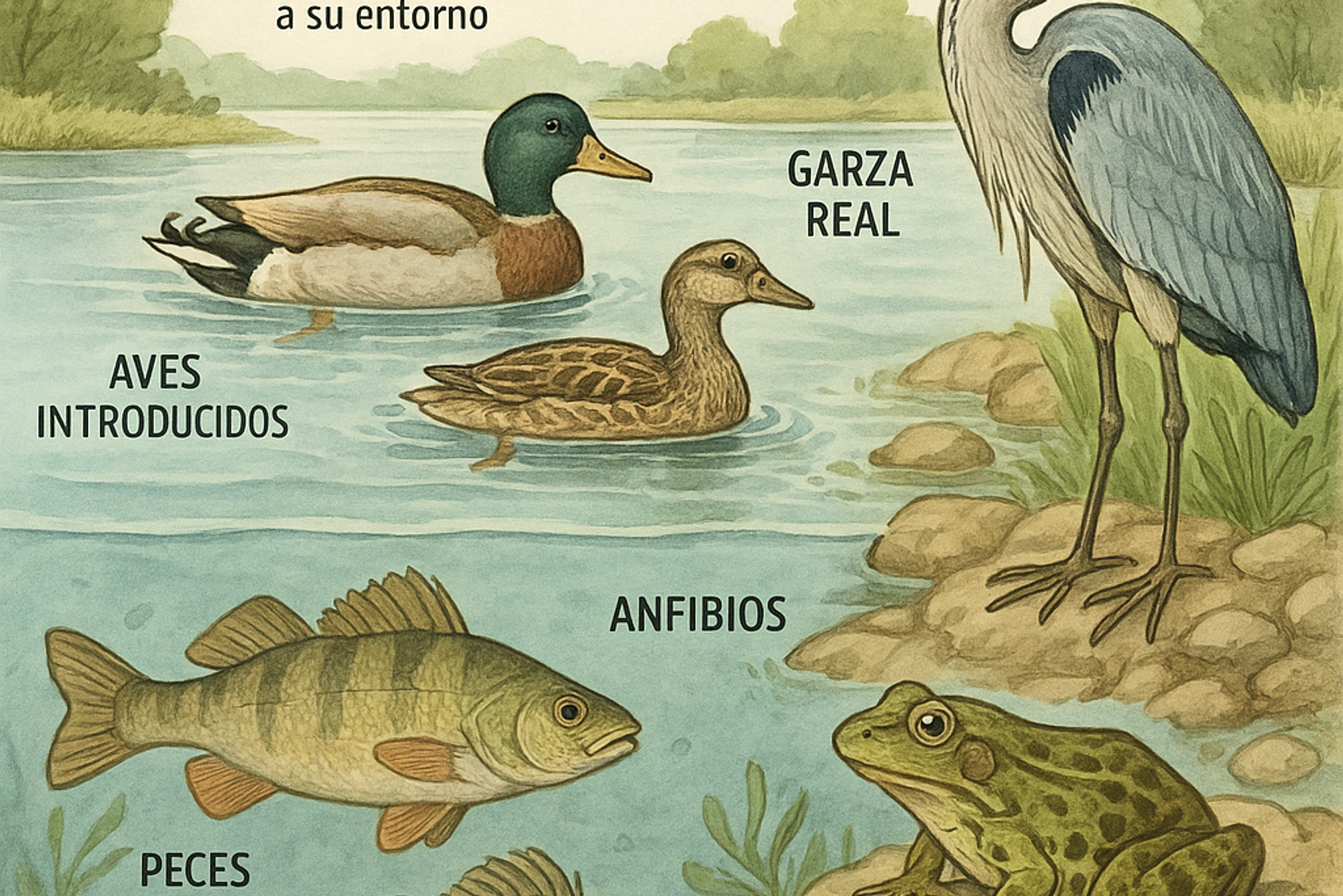 - Peces introducidos, aves acuáticas y anfibios son fundamentales en estos ecosistemas.