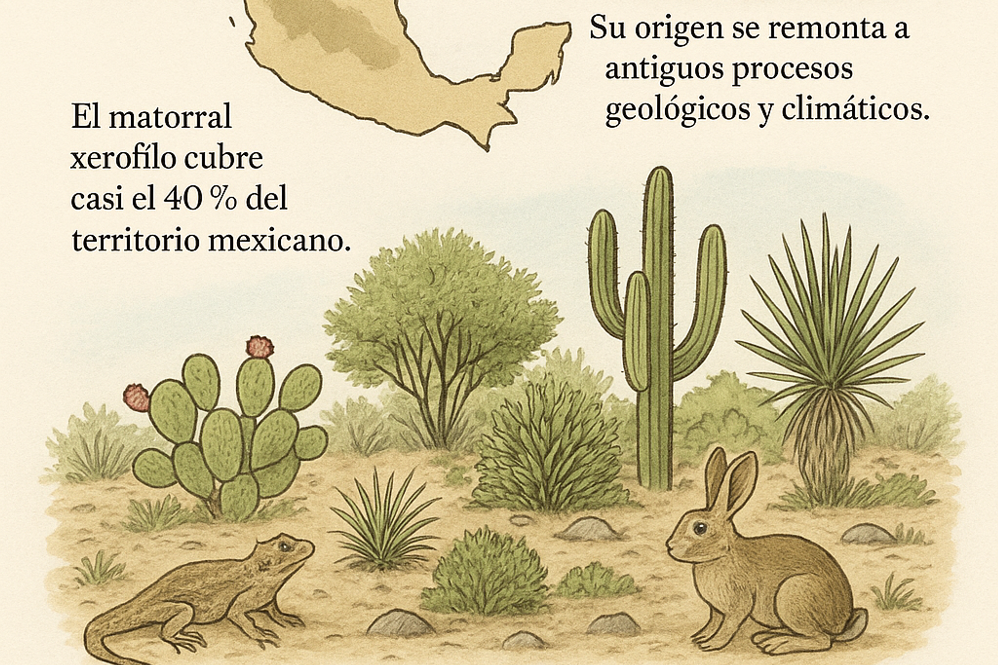 Los matorrales xerófilos de México son uno de los ecosistemas más representativos y extensos del país. Explora su formación geológica, ubicación, importancia ecológica y los retos que enfrenta hoy este entorno vital pero poco conocido.