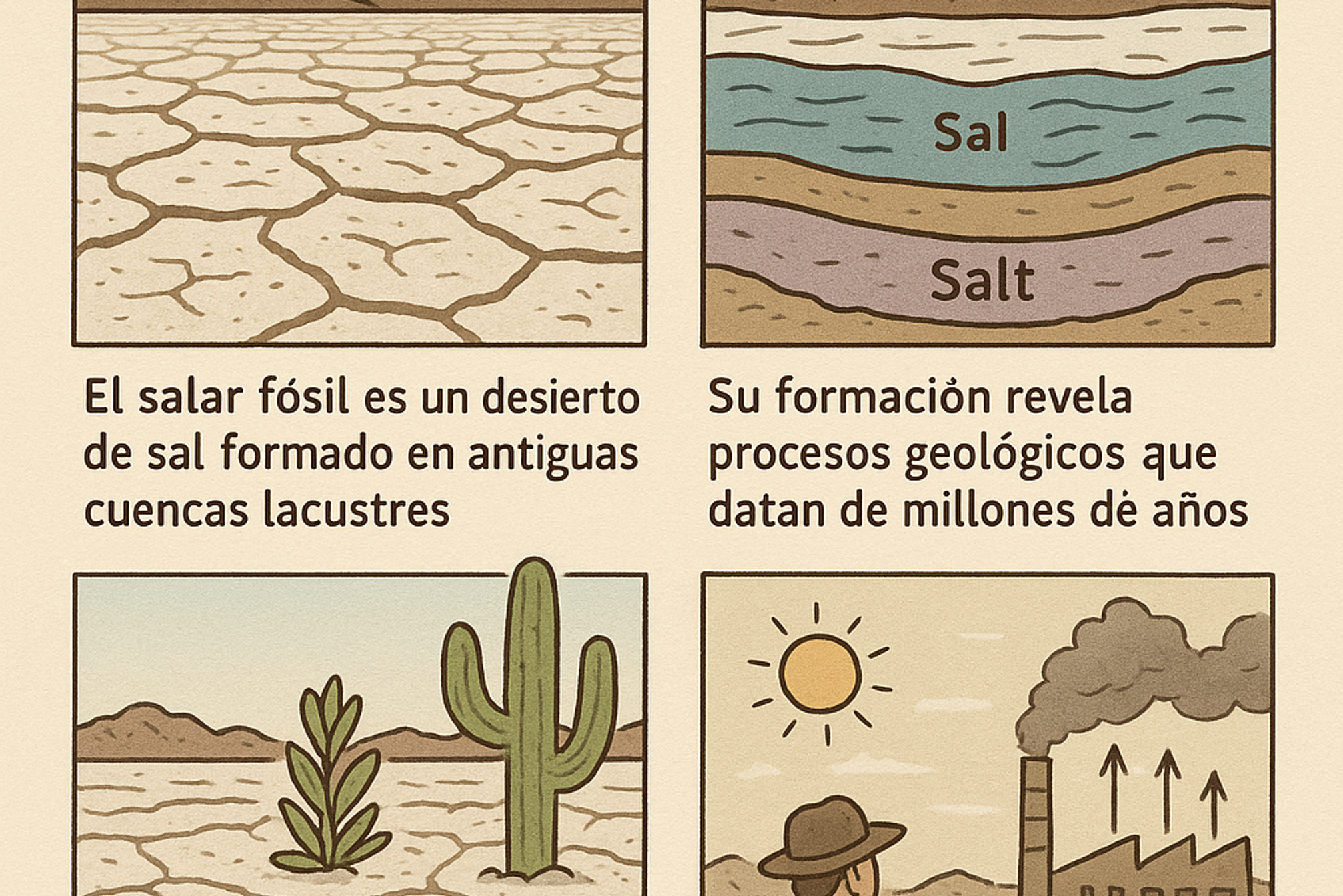 - El salar fósil es un desierto de sal formado en antiguas cuencas lacustres.