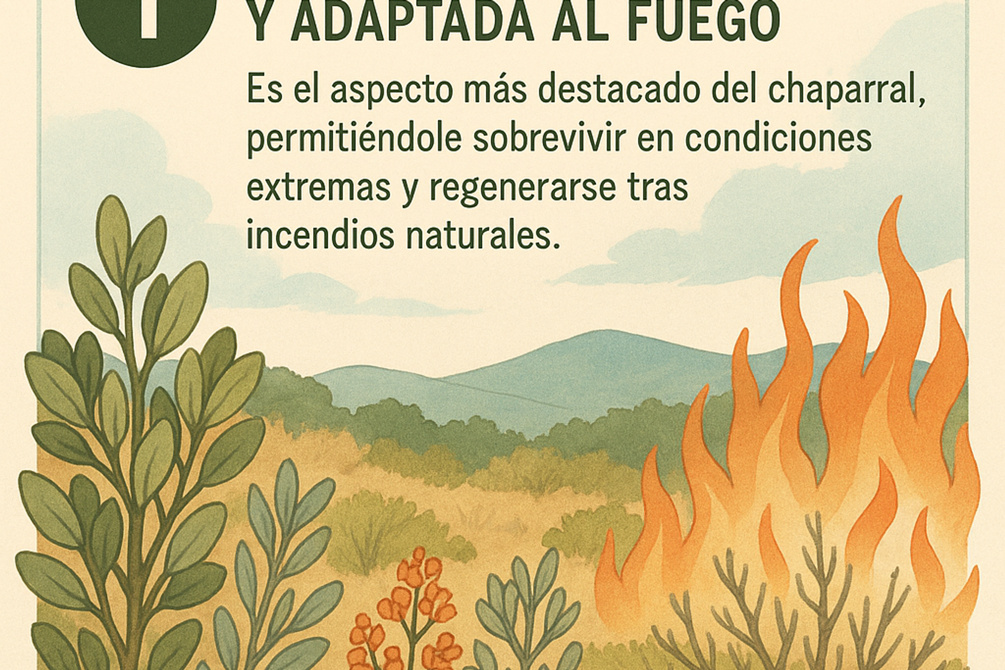 Esta singular adaptación permite que el chaparral no sólo resista, sino que dependa de los incendios para su regeneración.