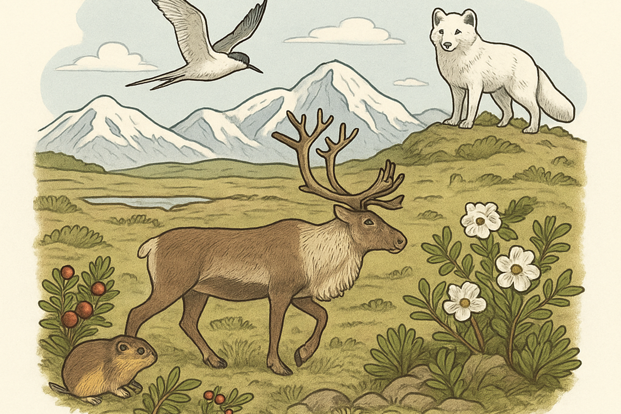 Está marcada por su suelo de permafrost y una breve pero intensa temporada de crecimiento durante el verano. La tundra ártica es crucial en el contexto del cambio climático, ya que almacena grandes cantidades de carbono en su suelo congelado y es el hábitat de aves migratorias de todo el mundo.
